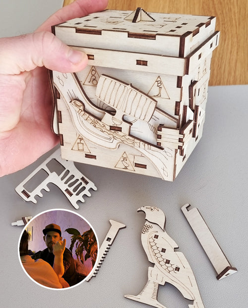 In addition, the secret compartment of the box can also be used as a creative gift wrap for money or jewelery gifts. The INCAPE box is the perfect gift idea for anyone who wants to experience an exciting puzzle.