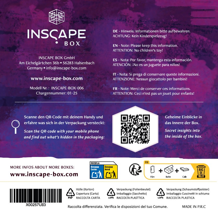 Verantwortliche Person: INSCAPE BOX GmbH, Am Eichelgärtchen36b 56283 Halsenbach, Germany, info@inscape-box.com