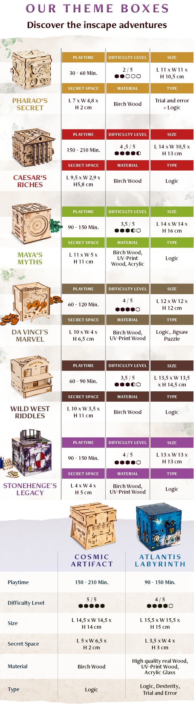 Each INSCAPE Puzzle Box contains a wooden coin hidden in the last compartment. Once you've solved all 8 unique INSCAPE Puzzle Boxes and collected every coin, a final secret challenge awaits you. With all 8 coins in hand, you unlock an exclusive bonus puzzle.